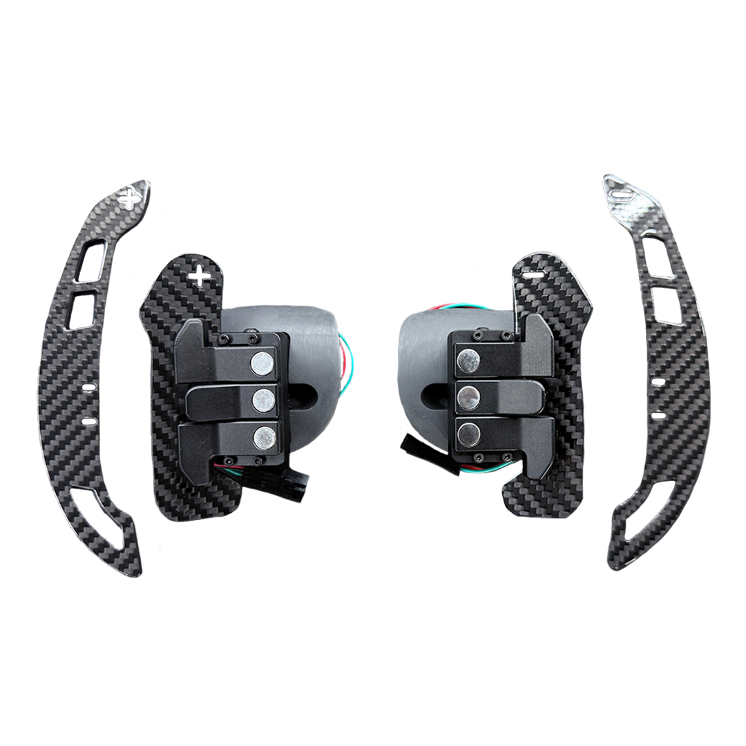 Each MagPaddles set is constructed using genuine carbon fiber, a CNC-machined aluminum core, and an aircraft-grade magnetic system engineered for a crisp, tactile shift. No flex. No rattle. No cheap plastic feeling. Just solid, repeatable feedback every time you shift gears.